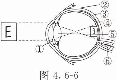 (1)小明看视力表时,字母在图4.6-6中的[④]