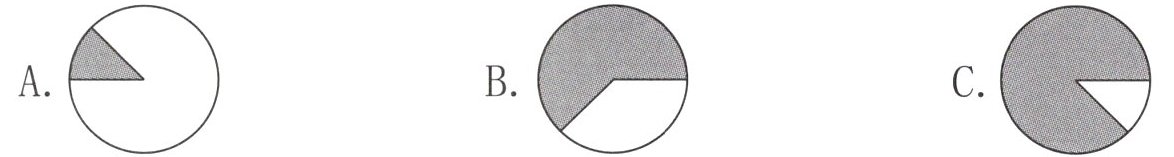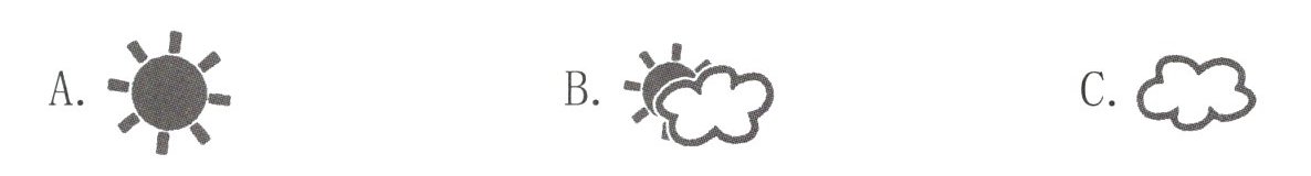 4. 天空中云比较多,有时可以看到太阳,这样的天气可以记录为多云。如果把天空当作一个圆,用阴影代表云量,下列选项最适合表示多云天气的是( )。