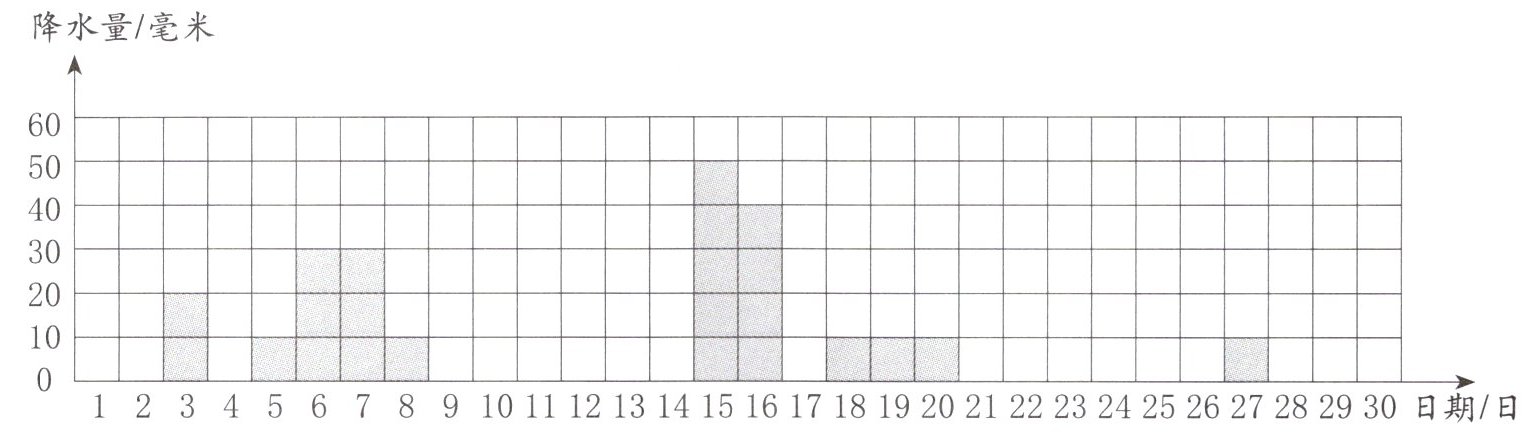 (1)从上图可以看出,这个月中,降水的有______天,不降水的有______天,______日的降水量最大。