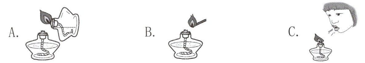 1. 下列使用酒精灯的方法中,( )是正确的。