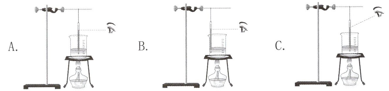2. 使用温度计测量水的温度时,下列做法正确的是( )。