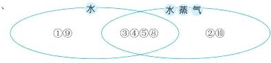 三、水和水蒸气有什么相同点和不同点?选择合适的内容,把序号填在正确的位置。