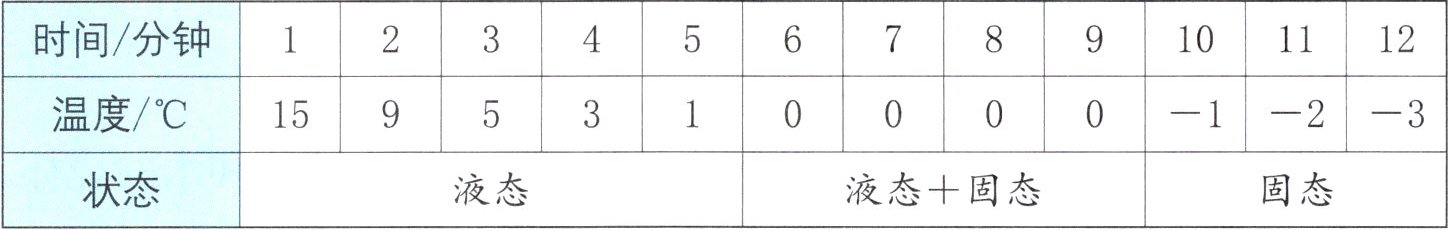 2. 下表是水结冰过程中的温度变化记录,下列说法不正确的是( )。