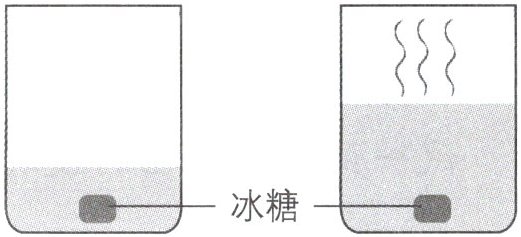 4. 为了探究冰糖在冷水中溶解得快还是在热水中溶解得快,小红设计了一个实验(如右图)。在这个实验中,小红的做法不正确的是( )。