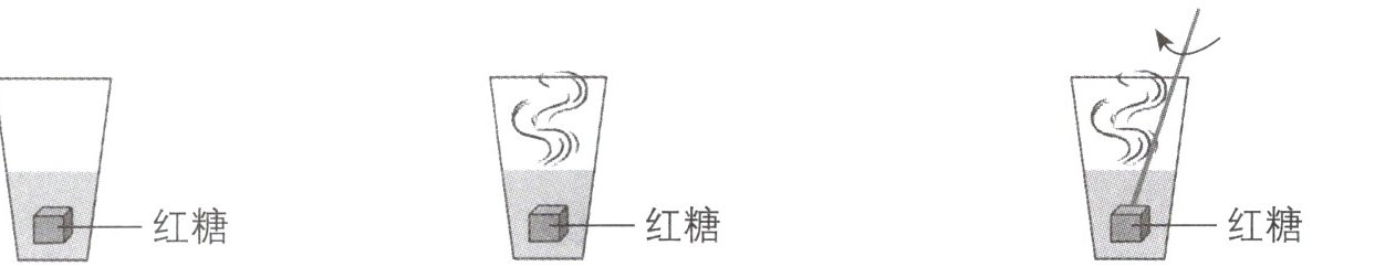 3. 下列杯子中,红糖( )溶解的速度最快。