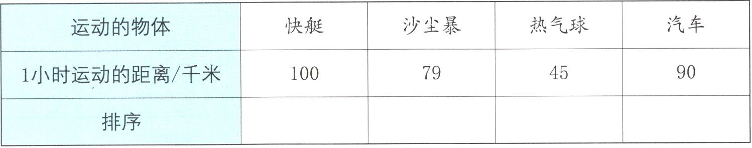 三、将下列物体1小时内的运动快慢按从快到慢排序,分别标出①②③④。