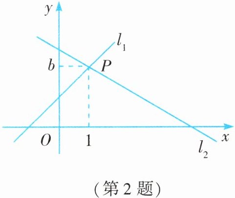 2. 如图,直线 $ l_1: y = x + 1 $ 与直线 $ l_2: y = mx + n $ 相交于点 $ P(1,b) $。