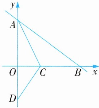 如图,在平面直角坐标系中,直线 $ AB $ 交坐标轴于点 $ A(0,6) $, $ B(8,0) $,点 $ C $ 为 $ x $ 轴正半轴上一点,连接 $ AC $,将 $ \triangle ABC $ 沿 $ AC $ 所在的直线折叠,点 $ B $ 恰好与 $ y $ 轴上的点 $ D $ 重合。