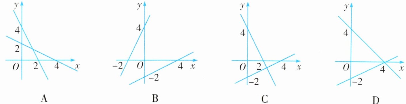 9. 用图象法解方程组$\begin{cases}x - 2y = 4,\\2x + y = 4\end{cases}$时,正确的是(