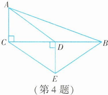 4. 如图,在 $ \triangle ABC $ 中,$ \angle ACB = 90^{\circ} $,$ D $ 是 $ BC $ 的中点,$ DE \perp BC $,$ AC = DE $。若 $ AC = 3 $,$ CE = 5 $,则 $ \triangle CEB $ 的周长为