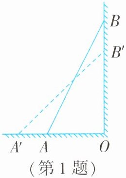 1. 如图,梯子 $ AB $ 靠在墙上,梯子的底端 $ A $ 到墙根 $ O $ 的距离为 $ 2\ m $,梯子的顶端 $ B $ 到地面的距离为 $ 7\ m $,现将梯子的底端 $ A $ 向外移到点 $ A' $ 处,使点 $ A' $ 到墙根 $ O $ 的距离为 $ 3\ m $,同时梯子的顶端 $ B $ 下降到点 $ B' $ 处,那么 $ BB' $ 的长(