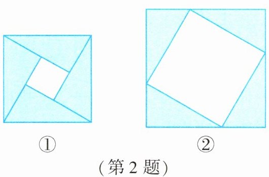 2. (2024·眉山)如图,图①是北京国际数学家大会的会标,它取材于我国古代数学家赵爽的“弦图”,是由四个全等的直角三角形拼成的。若图①中大正方形的面积为 24,小正方形的面积为 4,现将这四个直角三角形拼成图②,则图②中大正方形的面积为(