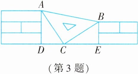 3. 如图,小聪把一个等腰直角三角尺放到两墙之间,已知 $ \angle ACB = 90^{\circ} $,$ AC = BC $,$ AB = 20\ cm $,于是他很快就知道了砌墙砖块的厚度的平方(每块砖的厚度相等)为(