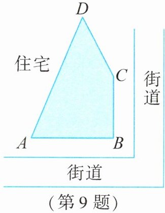9. 某小区在规划建设时,准备在住宅楼和临街的拐角处规划一块绿化用地(图中的阴影部分)。已知 $ AB = 12\ m $,$ BC = 9\ m $,$ CD = 8\ m $,$ AD = 17\ m $,技术人员通过测量确定了 $ \angle ABC = 90^{\circ} $。