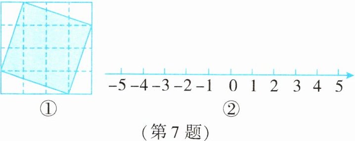 (3) 利用刻度尺和圆规,在图②的数轴上表示出该正方形的边长的值所对应的点。