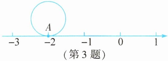 3. 如图,半径为 $\frac{1}{2}$ 的圆周上有一点 A 落在数轴上 -2 对应的点处,将圆在数轴上向右滚动一周,点 A 所处的位置在连续整数 a,b 之间,则 $a + b = $(