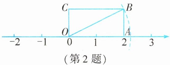 2. 如图,长方形 OABC 的边 OA 的长为 2,边 AB 的长为 1,OA 在数轴上,以原点 O 为圆心,对角线 OB 的长为半径画弧,交正半轴于一点,则这个点表示的实数是(