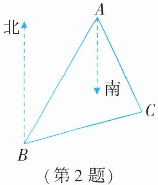 2. 如图,一艘轮船由$B$处向$C$处航行,在$B$处测得$C$在$B$的北偏东$75^{\circ}$方向上,在海岛上的观察所$A$处测得$B$在$A$的南偏西$30^{\circ}$方向上,$C$在$A$的南偏东$25^{\circ}$方向上。若轮船行驶到$C$处,则从$C$处看$A$,$B$两处的视角$\angle ACB$的度数为(