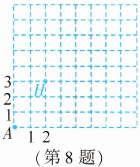 8. 在如图所示的方格中,若用$(0,0)$表示点$A$的位置,用$(2,3)$表示点$H$的位置,试在方格中标出点$B(2,2)$,$C(4,6)$,$D(5,2)$,$E(7,6)$,$F(8,2)$,并顺次连接起来,它看起来像26个英文字母中的