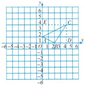 (2)如图,过点 C 向 x 轴、y 轴作垂线,垂足分别为点 D,E。因为$S_{四边形DOEC}=3×4=12$,$S_{\triangle BCD}=\frac {1}{2}×2×3=3$,$S_{\triangle ACE}=\frac {1}{2}×2×4=4$,$S_{\triangle AOB}=\frac {1}{2}×2×1=1$,所以$S_{\triangle ABC}=S_{四边形DOEC}-S_{\triangle BCD}-S_{\triangle ACE}-S_{\triangle AOB}=12-3-4-1=4$