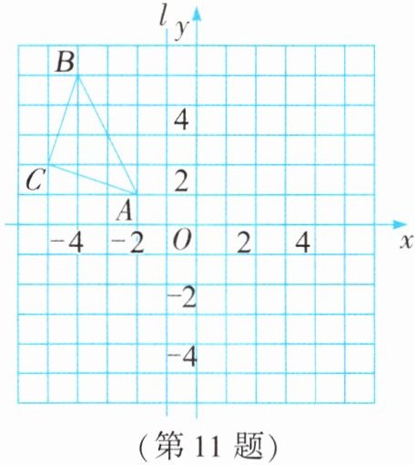 11. 如图,$\triangle ABC$在平面直角坐标系中,其中,点$A$,$B$,$C$的坐标分别为$(-2,1)$,$(-4,5)$,$(-5,2)$。