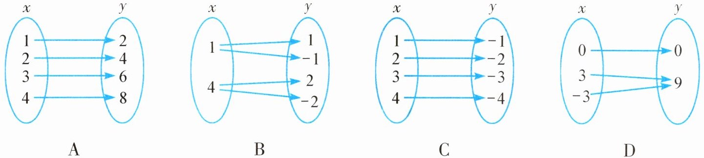 1. 一般地,如果在一个变化过程中有两个变量 $ x $ 和 $ y $,并且对于变量 $ x $ 的每一个值,变量 $ y $ 都有唯一的值与它对应,那么我们称