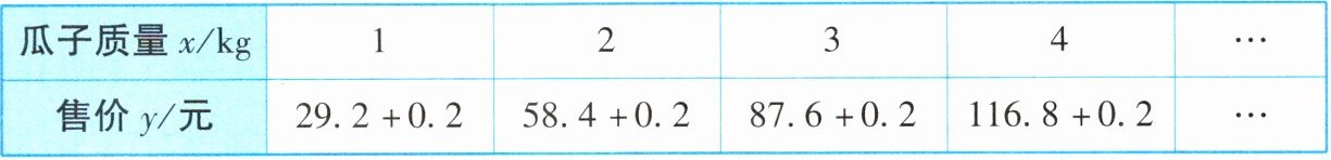 3. 某商店出售一种瓜子,其售价 $ y $(元)与瓜子质量 $ x(kg) $ 之间的关系如下表。