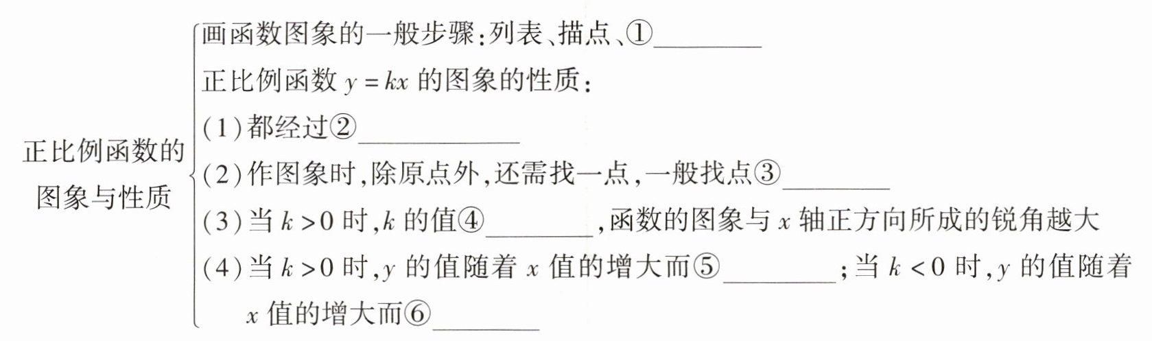 ;当 $ k < 0 $ 时,$ y $ 的值随着 $ x $ 值的增大而⑥减小
