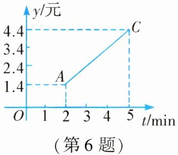 6. 如图,线段 $ AC $ 为从甲地向乙地打长途电话需付的电话费 $ y $(元)与通话时间 $ t $(min)之间的函数关系的图象。由图象可知,通话 2 min 需付电话费