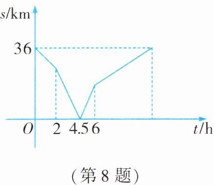 8. 甲、乙两人分别从 $ A $,$ B $ 两地相向而行,匀速行进,甲先出发且先到达 $ B $ 地,他们之间的距离 $ s(km) $ 与甲出发的时间 $ t(h) $ 之间的关系如图所示,则乙由 $ B $ 地到 $ A $ 地用了 。