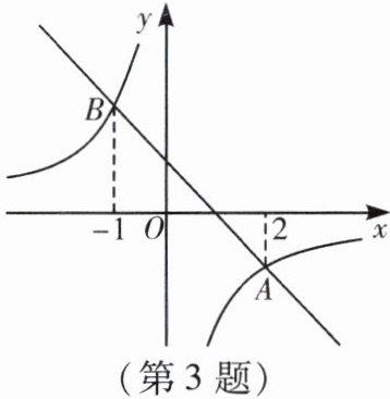 3. (2022·东营中考) 如图,一次函数$y_{1}=k_{1}x + b$的图象与反比例函数$y_{2}=\dfrac{k_{2}}{x}$的图象相交于$A$,$B$两点,若点$A$的横坐标为$2$,点$B$的横坐标为$-1$,则不等式$k_{1}x + b<\dfrac{k_{2}}{x}$的解集是(