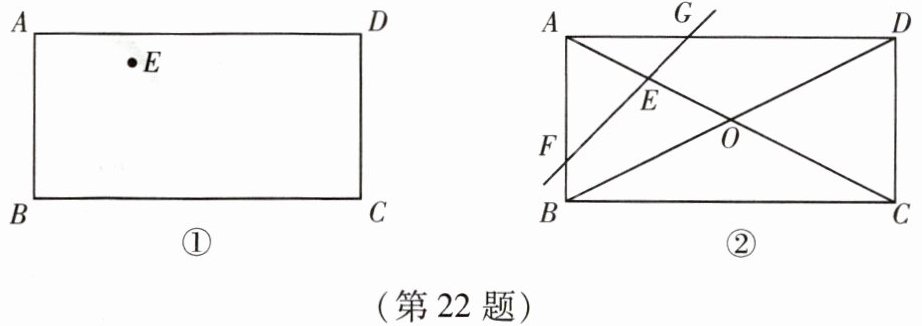 (1) 如图①,点 $E$ 为矩形 $ABCD$ 内一点,请过点 $E$ 作一条直线,将矩形 $ABCD$ 的面积平分,并说明理由;