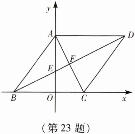 23. (2022·牡丹江中考)如图,在平面直角坐标系中,四边形 $ABCD$ 的顶点 $A$ 在 $y$ 轴上,其顶点 $B$,$C$ 在 $x$ 轴上,$AD // BC$,$\angle ABC$ 的平分线 $BD$ 交 $AO$ 于点 $E$,交 $AC$ 于点 $F$,$\angle CAO = \angle DBC$.已知 $OB$,$OC$ 的长分别是一元二次方程 $x^2 - 5x + 6 = 0$ 的两根,且 $OB > OC$.