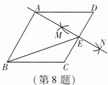 8. (2022·巴中中考)如图,在菱形 $ABCD$ 中,分别以点 $C,D$ 为圆心,大于 $\frac{1}{2}CD$ 的长为半径画弧,两弧分别交于点 $M,N$,作直线 $MN$ 恰好经过点 $A$,与 $CD$ 交于点 $E$,连接 $BE$,下列有关结论错误的是(