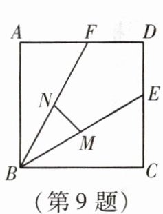 9. (2022·广州中考)如图,正方形 $ABCD$ 的面积为 $3$,$E$ 是 $CD$ 上一点,且 $CE = 1$,$\angle ABE$ 的平分线交 $AD$ 于点 $F$。若 $M,N$ 分别是 $BE,BF$ 的中点,则 $MN$ 的长为(