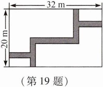19. 如图,在长为 $32m$、宽为 $20m$ 的矩形地面修筑同样宽的道路(图中阴影部分),余下的部分种上草坪,要使草坪的面积为 $540m^{2}$,求道路的宽。