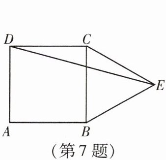 7. 如图,在正方形 $ABCD$ 中,以 $BC$ 为边在正方形外部作等边三角形 $BCE$,连接 $DE$,则 $\angle CDE =$