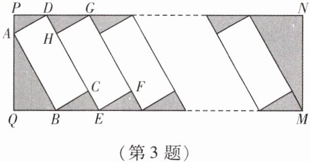 3. (2024·广东中考)中国新能源汽车为全球应对气候变化和绿色低碳转型作出了巨大贡献。为满足新能源汽车的充电需求,某小区增设了充电站,如图所示的是矩形$PQMN$充电站的平面示意图,矩形$ABCD$是其中一个停车位。经测量,$\angle ABQ = 60^{\circ}$,$AB = 5.4\ m$,$CE = 1.6\ m$,$GH \perp CD$,$GH$是另一个车位的宽,所有车位的长宽相同,按图示并列划定。(结果精确到$0.1\ m$;参考数据:$\sqrt{3} \approx 1.73$)