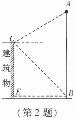 2. 如图,张华同学在学校某建筑物的 C 点处测得旗杆顶部 A 点的仰角为 30°,旗杆底部 B 点的俯角为 45°。若旗杆底部 B 点到建筑物的水平距离 BE = 9 m,旗杆台阶高 1 m,则旗杆顶点 A 离地面的高度为