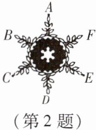 2. (2022·枣庄中考改编)北京冬奥会开幕式上的雪花状主火炬的设计体现了“环保低碳”理念。如图,其主体形状呈正六边形,若点 $A$,$B$,$C$,$D$,$E$,$F$ 是正六边形的顶点,则 $\tan \angle ACF =$ 。