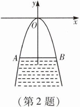 2. 如图,某涵洞截面的形状是抛物线,现测得水面宽 $ AB = 1.6\ m $,涵洞的顶点 $ O $ 到水面的距离为 $ 2.4\ m $,求在如图所示的坐标系中抛物线的表达式.