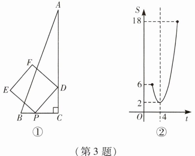 (2)S关于t的函数表达式为S=t²−8t+18(2≤t≤8),AB=6