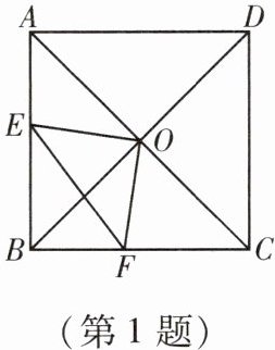 1. 如图,在正方形 $ABCD$ 中,对角线 $AC$,$BD$ 交于点 $O$,点 $E$,$F$ 分别为边 $AB$,$BC$ 上的点,且满足 $\angle EOF = 90°$,给出下列结论:① $\triangle BEO \cong \triangle CFO$,$\triangle AEO \cong \triangle BFO$;② $\triangle EOF$ 为等腰直角三角形;③若正方形 $ABCD$ 的边长为 $2$,则线段 $EF$ 的最小值为 $\sqrt{2}$,最大值为 $2$;④若 $AE = 3$,$CF = 4$,则 $EF = 5$;⑤四边形 $BFOE$ 的面积始终不变. 其中正确的有