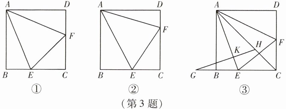 3. (2022·黔西南州中考)在正方形 $ABCD$ 中,$E$,$F$ 分别是 $BC$,$CD$ 边上一点(点 $E$ 不与点 $B$,$C$ 重合),且 $\angle EAF = 45°$.