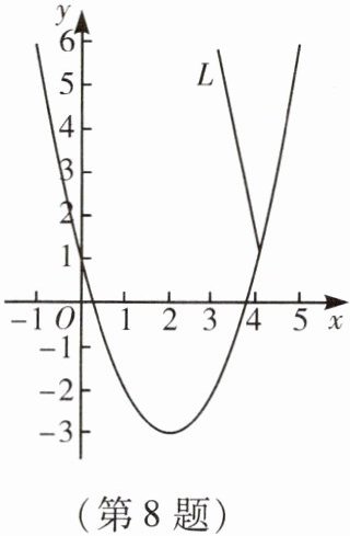 8. (2022·德州中考)下面框里的题目中的黑色部分是被墨水污染的无法辨认的文字,导致题目缺少一个条件而无法解答,经查询答案发现,该二次函数的表达式为$y = x^{2}-4x + 1$.