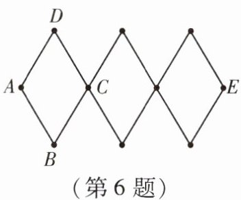 6. 如图,某木制活动衣帽架是由三个全等的菱形组成的,根据实际需要可以调节A,E间的距离. 若A,E间的距离调节到60 cm,菱形ABCD的边长AB=20 cm,则∠DAB的度数是(
