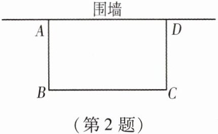 2. 如图,邻边长度不相等的矩形花圃 $ ABCD $,它的一边 $ AD $ 利用已有的围墙,另外三边所围的栅栏的总长度是 $ 6 m $。若矩形的面积为 $ 4 m^{2} $,则 $ AB $ 的长度是