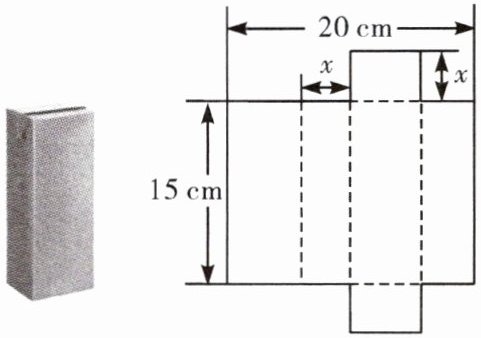 9. (2022·衢州中考) 将一个容积为$360\ cm^{3}$的包装盒剪开铺平,纸样如图所示。利用容积,列出图中$x(cm)$满足的一元二次方程: