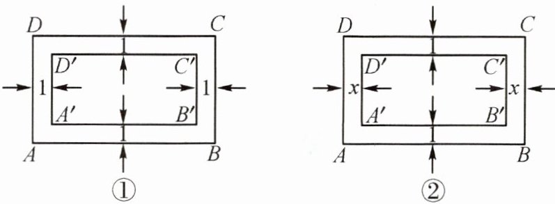 (1)如图①,若沿矩形$ABCD$四周有宽为$1$的环形区域,图中所形成的两个矩形$ABCD$与$A'B'C'D'$相似吗?请说明理由.