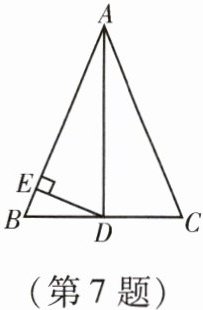 7. 如图,在 $\triangle ABC$ 中,$AB = AC$,$AD$ 为 $BC$ 边上的中线,$DE\perp AB$ 于点 $E$。